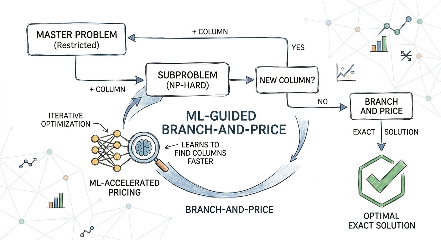 Classic combinatorial optimization problems can be solved exactly using column generation and branch-and-price techniques. However, the computational bottleneck often lies in the subproblem, which is typically NP-hard and frequently approximated with heuristics. We are wroking on frameworks that integrate machine learning to learn key elements of the pricing problem, accelerating the solution process while maintaining the exactness of the overall framework.
