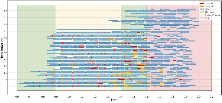 Electric bus fleets are rapidly expanding in numbers, and this necessitates re-optimization of bus to trip assignments. Creating a tight schedule for buses would result in higher utilization, but the energy needs of the itinerary may exceed the range of the bus, requiring it to charge in between. In this context, our group is interested in finding scalable solutions for assignment, integrating renewables and crew scheduling, and modeling the effect of delays.